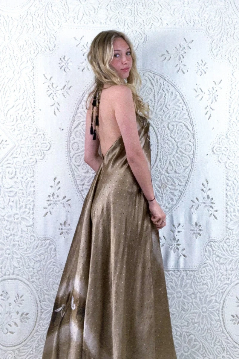 Our Athena Dress – A simple, effortless design with clean lines that gives the wearer an elegant shape and an effortless beauty. A retro halter-neck neckline and a free flowing A-line shape maxi skirt means you can adjust the Athena to you. Wear loose or belted for a more fitted shape.
