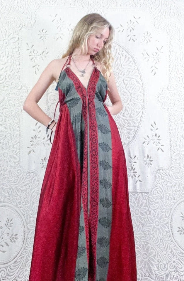 Our Eden dress – this elegant style is a dream! With it’s long floaty skirt and a drawstring waist that can be adjusted and cinched in to fit you! Also featuring a classic halter-neck design with eyelet ring details.