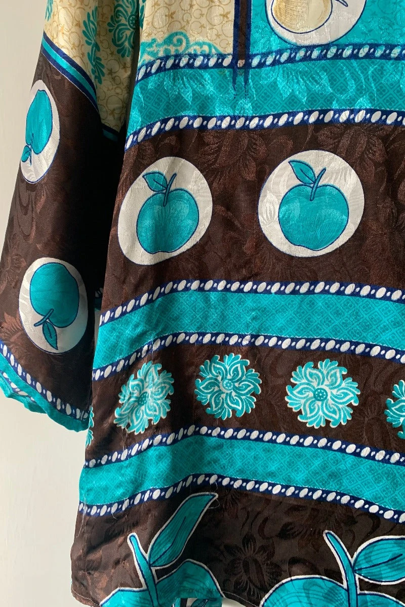 Fabric: Made from vintage recycled sari fabrics – each one is totally unique. Contents is unknown, but feels like a lightweight silky/poly blend – slightly sheer.