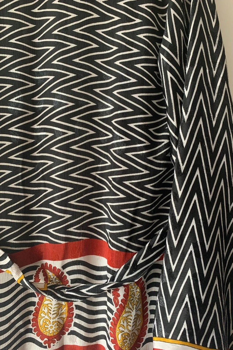 Fabric: Made from vintage recycled sari fabrics – each one is totally unique. Contents is unknown, but feels like a lightweight silky/poly blend – slightly sheer.