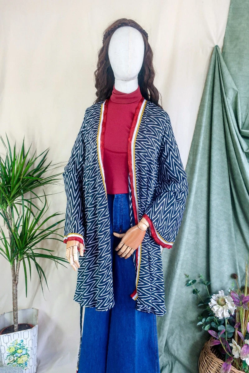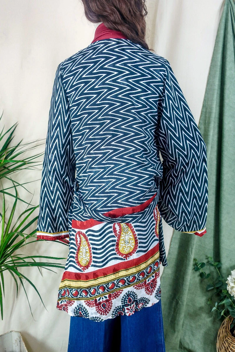 Size: Free size S/M – Best fit UK sizes 6 to 12 (S/M) as a dress or worn open like a kimono. Please see measurements below.