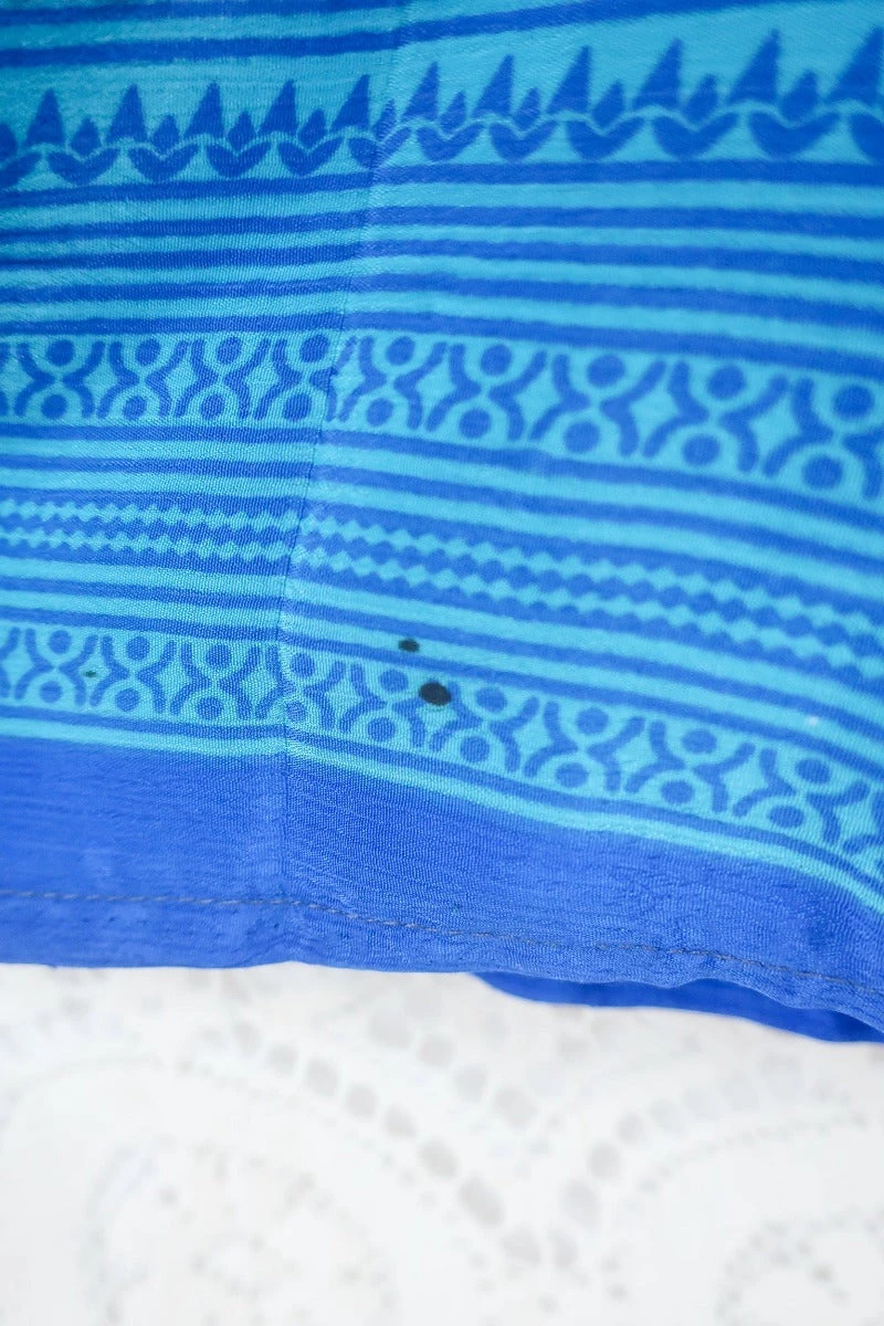 Fabric: Vintage Indian Sari – exact content unknown but feels silky and lightweight. Slightly sheer.
