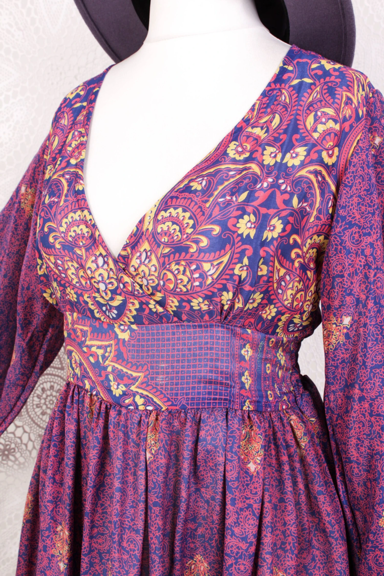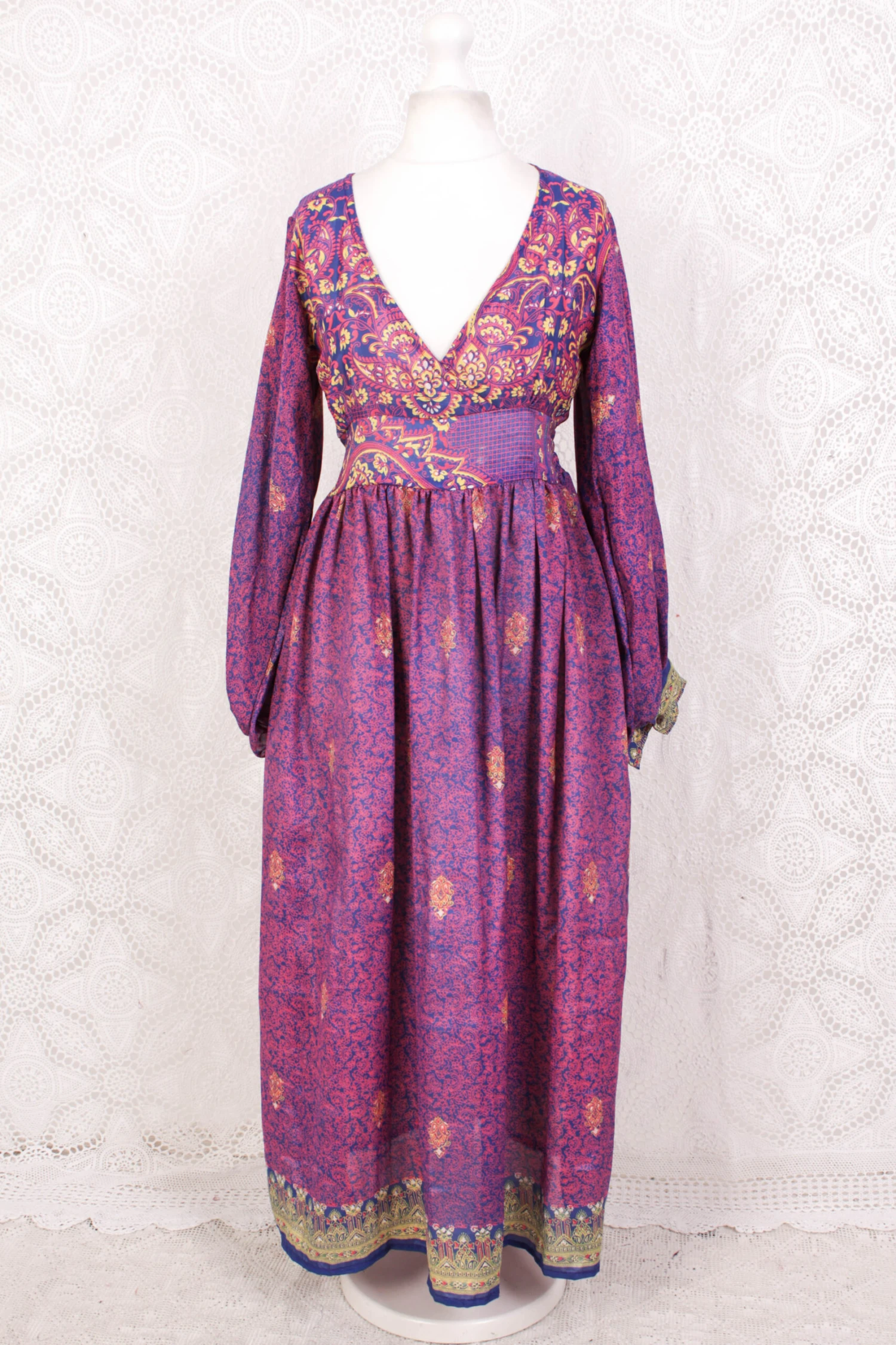 Our stunning Rosemary maxi dress reworked from vintage sourced fabric!