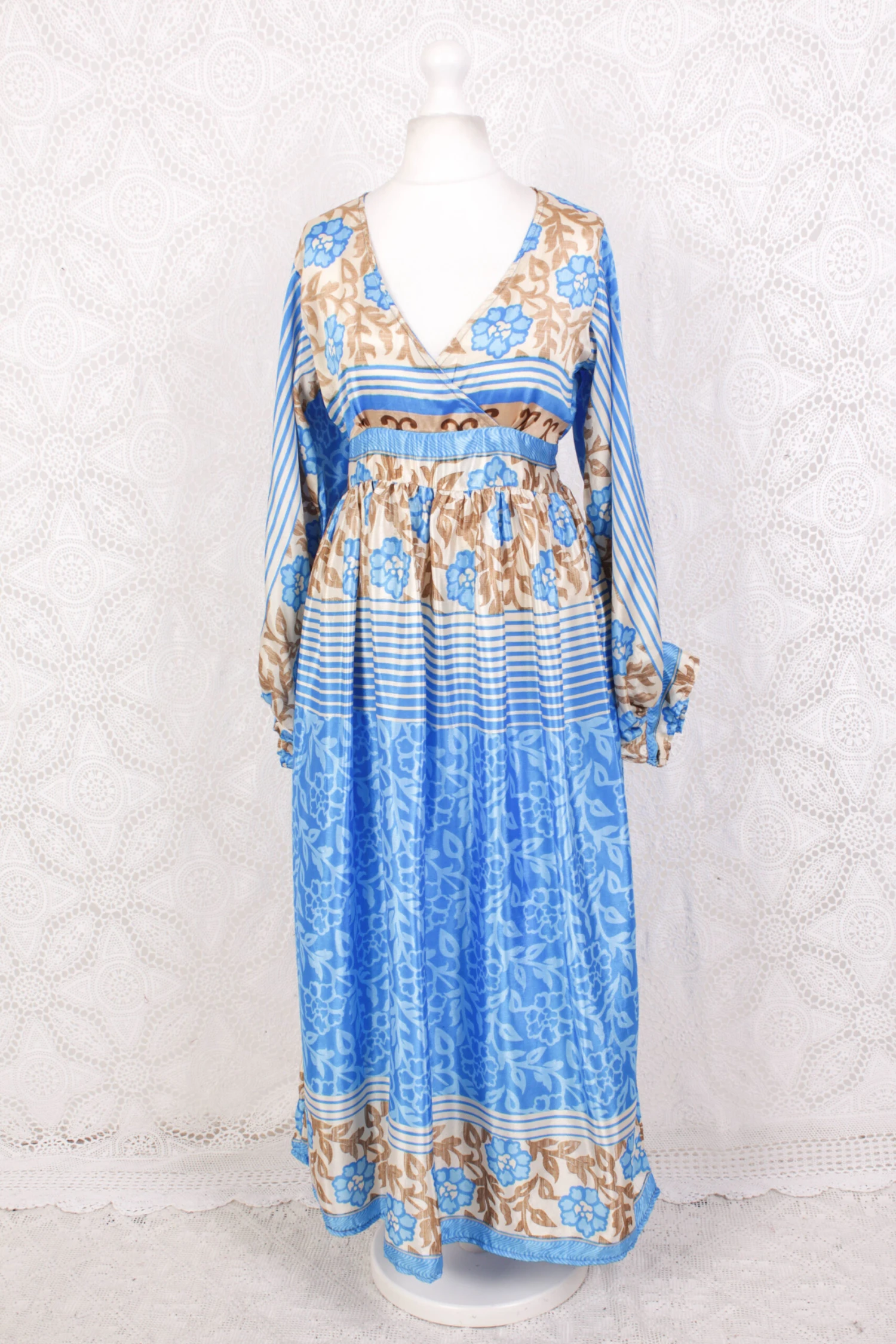 Our stunning Rosemary maxi dress reworked from vintage sourced fabric!
