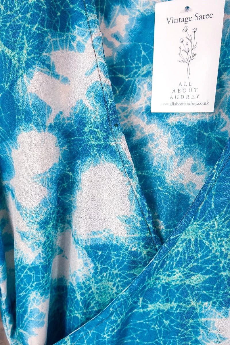 Handmade from Recycled Vintage Indian Sari – Exact Content Blend Unknown, feels silky and soft, slightly sheer.