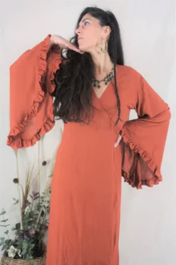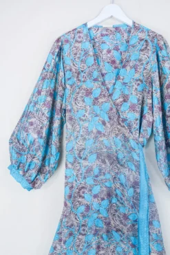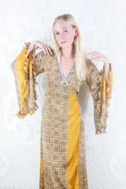 Venus Maxi Wrap Dress – Parchment & Ruby Floral Shimmer – Vintage Indian Sari – XS – S/M
